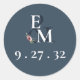 Modern Floral Burgundy Navy Peach Blush Initials Classic Round Sticker