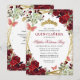 Modern Floral Burgundy Red Gold Tiara Quinceañera Invitation