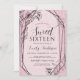 Modern Floral Dusty Pink Glitter Sweet 16 Invitation