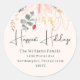 This modern floral happiest holidays envelope seals has a whimsical and elegant design featuring vibrant watercolor illustrations of red and pink poinsettias and delicate winter greenery. With chic botanical elements like pine, holly, and winter berries, the card’s colourful palette, including dusty rose and gold accents, adds a boho touch to a modern holiday aesthetic. This festive December design blends a light, whimsical vibe with a floral theme perfect for the Christmas season.