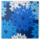Modern take on a traditional Japanese floral kimono print ceramic tile - stylised flowers in cobalt and cerulean blue, aqua, and white on a dark navy / indigo blue background