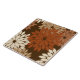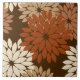 Modern take on a traditional Japanese floral kimono print ceramic tile - stylised flowers in shades of taupe tan, rust brown, and beige on a dark chocolate brown background