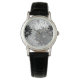 Modern take on a traditional Japanese floral kimono print women's watch - stylised flowers in shades of graphite and light grey / grey, black and white on medium grey background