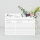 Modern Floral Navy Blue Burgundy Red Recipe Card