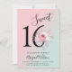 Pretty Sweet 16 birthday party invitation with elegant roses, ombre blush pink- mint background and elegant calligraphy font. Upload your favourite photo.