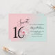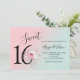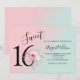 Pretty Sweet 16 birthday party invitation with elegant roses, ombre blush pink- mint background and elegant calligraphy font.