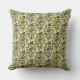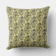 Modern Floral Pattern Blue Black On Chartreuse Cushion