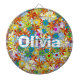 Colourful Floral Pattern Dart Board will be first thing they see when opening the door. Featuring a Custom Personalised Trendy Funky Oversized Big Name right in the middle showing everyone whose room this is! How unique for a adventurous brave boyish teen girl's room who still loves flowers along with all the boy stuff. Wildflower bloom, bohemian chic floral, folk art boho bohemian floral, folksy botanical floral, elegant folksy floral pattern, heritage revival botanical pattern, grand millennium rococo chic floral, colourful botanical pattern, flower garden girly, personalised name pink blue yellow red orange,