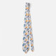 This beautiful necktie features a modern floral pattern in blue, orange and pink on white.