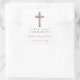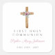 Modern Floral Pink Cross Girl First Communion Square Sticker
