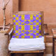 Modern Floral purple & yellow Chequerboard pattern Cushion