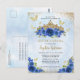 Modern Floral Royal Blue Gold Tiara Quinceañera Postcard