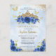 Modern Floral Royal Blue Navy Blue Gold Tiara Butterfly Sparkle Glitter Birthday Quinceañera Invitation
