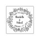 This "Save the Date" rubber stamp features a flower frame with couple names and date.