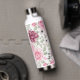 The bottle looks even better in real life. The ice cubes I put in lasts all day! I have my bottle with me all the time. It's summer and having something cold to drink feels amazing. With this bottle I always have something super cold. I have only tried the hot drink once and it lasted a long time as well. The color blue is a navy blue and the white printed on it is vibrant. It printed perfectly. I love my personalized smile water bottle.