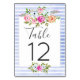 Modern Floral Watercolor Navy Stripes Table Number