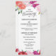 This modern wedding ceremony program features watercolor flowers in vibrant pink. Customise it with your own wedding details.