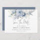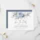 Modern Florals Dusty Blue QR Code Wedding. Available digitally and printed. Gorgeous florals in summery light blue and white and an elegant set script for Save The Date. On the back, a coordinating darker shade of Dusty blue. The rest of the text you can easily personalise with your details. Add your QR code to your wedding website on the back or delete this and the text on the back if not required.