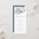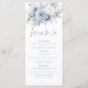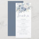 Modern Florals Dusty Blue Text Wedding Menu. Available digitally and printed. An informal set typography in blue for the main heading Menu complementing the rest of the text which you can easily personalise, with beautiful autumn coloured flowers and grasses at the top.