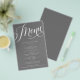 This trendy design features eye catching white script with flourishes. Use the template to fill in your information. The "Customise further" feature can be used to change the font (size, style, colour), and add more lines of text, change the layout, or add text to the back.