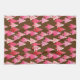 Mid-Century Modern, flower embellished, Christmas trees in a silky gradient - trees in a gradient of coral pink and cream, accented with coral, on a chocolate brown background