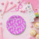Paper plates in a pattern of Mid-Century Modern, flower embellished, Christmas trees in a silky gradient - trees in a gradient of pale pinks, accented with pink and violet, on an orchid pink background