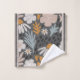 Contemporary Towel Set with Perwinkle, Blush, Orange flowers on brown trimmed background.