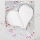 Modern and abstract paper heart illustration on a light bokeh background with falling red hearts.