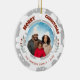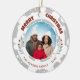 Modern Foliage Christmas Family Photo Holiday Ornament. A custom family photo with a bright grey and white background and modern foliage. Add your photo and customise the text on the ornament.
