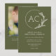 Modern Foliage Frame Olive Green Photo Wedding Invitation