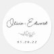 Custom-designed wedding stickers/labels featuring modern simple black and white foliage design.