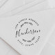 Custom-designed wedding round return address stamp featuring modern calligraphy with foliage design.