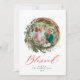 Modern foliage wreath christmas blessed red script holiday card