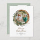 Modern minimal foliage wreath Merry Christmas script holiday Christmas postcard. Hand painted eucalyptus, minimal foliage and modern rustic rattan wreath give this holiday card a luxurious feel. In classy greens, browns and greys.
