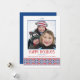 Give your holiday modern flair with this design based on traditional Slavic folk art embroidery patterns. The artwork is a graphic rendition of a blossoming poinsettia flower. The pattern is designed in red and a deep charcoal blue and spans the front bottom of the card. Customise by adding your own photograph and edit the text by using the easy, provided templates. The reverse side is coloured a matching blue. Simple yet elegant, it brings old-world charm in a contemporary way.