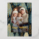 Send your Christmas greetings this season with this modern holiday design featuring elegant typography, your photo in an arch with a gold border, over a background of holiday Christmas trees and greenery with metallic gold foil accents.