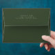 Simple wedding envelope with three line return address in a white serif font on the back flap.