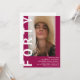 Modern 40th Birthday Invitation - Design features a pink background that can be changed to any colour, a portrait photograph, the text 'FORTY' in bold white font and an elegant birthday party template that can easily be personalised. Stylish, trendy and perfect for any age!