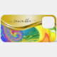Modern Fractal Rainbow Yellow Monogram Name Case-Mate iPhone Case