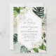 tropical greenery geometric frame white floral design. The text and colours can be personalised to match your wedding theme.