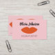 Perfect minimalist and chic design business card for makeup artist, beauty salon, nail artist, beautician etc. Featuring illustration of a quirky red lips on a pastel aesthetic background. Professional business cards for male and female makeup artist. Beauty, nail, makeuo aesthetician aesthetician pink abstract trendy business card.