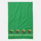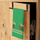 This Bright green kitchen towel has garden fresh peppers and orange-yellow stripes as decoration. Great for a vegetarian kitchen.