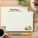 These tasty envelopes feature modern style illustration of fruits and vegetables. The cream coloured envelopes have your name and address on the back flap with a pattern of fruits and veggies on the inside.
