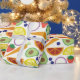 Give your gifts a fresh touch with this fruit and vegetable patterned wrapping paper. This fun, modern style pattern features illustrations of a colourful assortment of fruits and vegetables against a cream coloured background. There are orange and lemon wedges, carrots, avocados, blueberries, cucumbers, and strawberries.