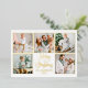 Modern Fun Calligraphy Gold Foil Script 5 Photo Family Photo Collage Merry Christmas Card - Your Photos in Gold Foil Frames with a Sage Green back