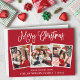 Modern Fun Calligraphy Script Merry Christmas 3 Photo Holiday Card - Red Background
