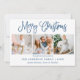 Modern Fun Calligraphy Script Merry Christmas 3 Photo Holiday Card - Dusty Blue