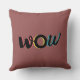 Modern, playful, bold graphic design of a word "wow" in red, yellow, blue colours. Handwritten, fun, lively brush stroke style typography.