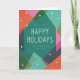 Send your customers and clients warm holiday wishes with this modern, fun, colourful and bright corporate holiday greeting card. It features a geometric design on the front with the words, "Wishing you happy holidays and a wonderful New Year". Please note that this text is locked and cannot be edited.