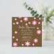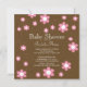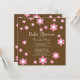Stylish square floral baby shower invitation girl featuring stand out pink daisy flowers set on a trendy brown background with a matching back. Our popular modern floral baby shower invitation is perfect for a baby girls shower or gender neutral baby shower. Visit our shop for matching thank you note cards, stickers & postage stamps.